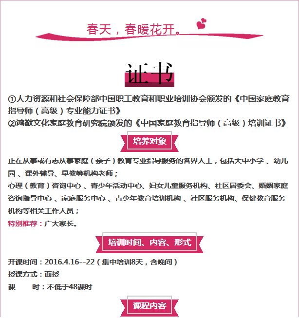 家庭教育指導(dǎo)師(高級)春季班招生簡章