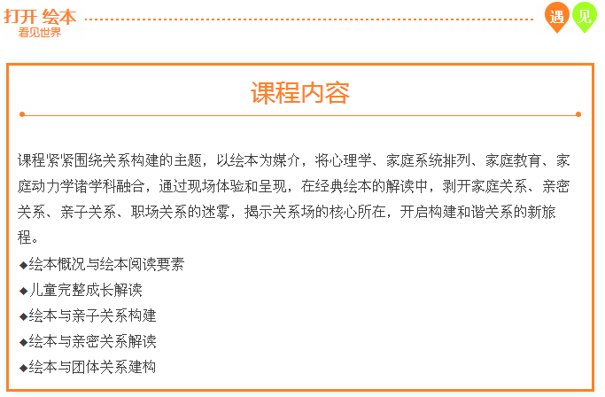 國(guó)內(nèi)唯一以心理學(xué)角度解讀繪本,發(fā)覺(jué)繪本深層價(jià)值的繪本專(zhuān)題培訓(xùn)。以繪本為媒介,解讀兒童的完整成長(zhǎng),解讀家庭關(guān)系的奧秘,傳遞愛(ài)的信息和力量,激發(fā)滋養(yǎng)孩子的內(nèi)在動(dòng)力。
